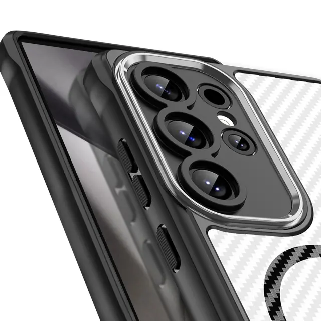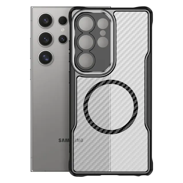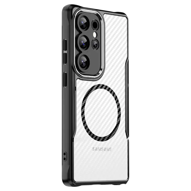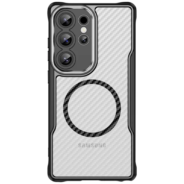 Ovitek za Samsung Galaxy S24 Ultra, odporen na udarce, MagSafe, videz karbona, Prozorno črna