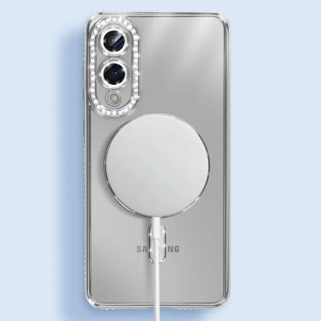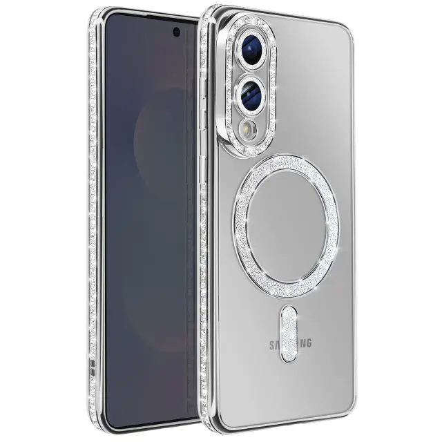 Ovitek za Samsung Galaxy S25 Edge, združljiv z MagSafe, z bleščečim robom, Srebrna