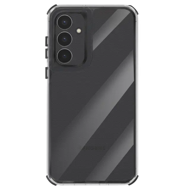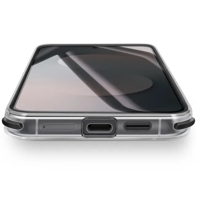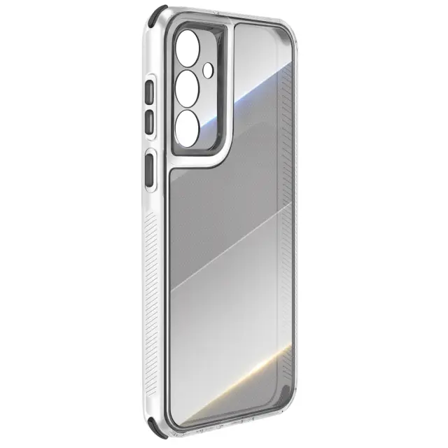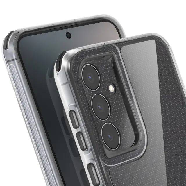 Struktura iz dveh materialov, prožnega silikona in togega polikarbonata, za dvojno zaščito. Ojačani vogali za učinkovito blaženje udarcev ob nenamernih padcih. Prozorna površina za ohranitev izvirne zasnove pametnega telefona. Teksturirani nedrseči obrisi za udoben in varen oprijem.