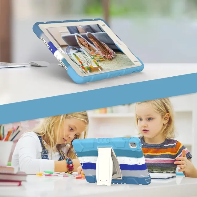 Ta izjemen etui združuje trpežnost, funkcionalnost in slog v enem kompaktnem pripomočku. Zasnovan je za zagotavljanje zaščite vaše naprave v različnih situacijah, pri čemer uporablja kombinacijo zelo močnih materialov, kot sta silikon in plastika. Tridelna oklepna konstrukcija je posebej prilagojena potrebam aktivnih uporabnikov, saj omogoča varno uporabo tablice v vsakodnevnih okoliščinah. Izdelek je primeren za različne načine uporabe, od dela in zabave do varne uporabe s strani otrok.