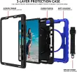 Ta visokokakovosten zaščitni ovitek je zasnovan za zagotavljanje celovite varnosti vaše tablične naprave med vsakodnevno uporabo. Njegova napredna trislojna sestava, ki vključuje trdno plastično ohišje in mehak silikonski hrbtni del, učinkovito ščiti tablico pred praskami, močnimi udarci in vibracijami. Izdelek je posebej primeren za aktivne uporabnike, ki potrebujejo zanesljivo rešitev za uporabo naprave na terenu, pri delu ali med potovanji. Z vgrajenimi praktičnimi dodatki, kot sta vrtljivo stojalo in naramni pas, ta ovitek omogoča prilagodljivo in udobno uporabo v različnih okoljih.