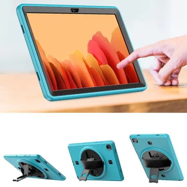 Ta trpežen ovitni ovitek je zasnovan za zagotavljanje visoke stopnje zaščite vaše tablice Samsung Galaxy Tab A8 10,5 v različnih okoljih. Sestavljen je iz treh plasti, ki vključujejo plastično ohišje in mehko silikonsko hrbtišče, kar skupaj varuje napravo pred praskami in tresljaji. Opremljen je z zložljivim stojalom in nastavljivim naramnim trakom, kar omogoča praktično uporabo tako doma kot na prostem. Njegova zasnova zagotavlja varno uporabo med pohodništvom, izleti ali pri profesionalnem delu na terenu.