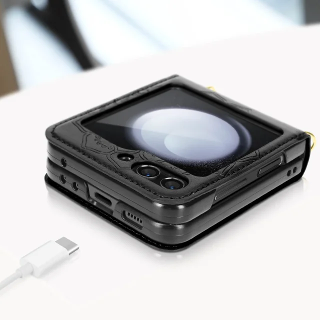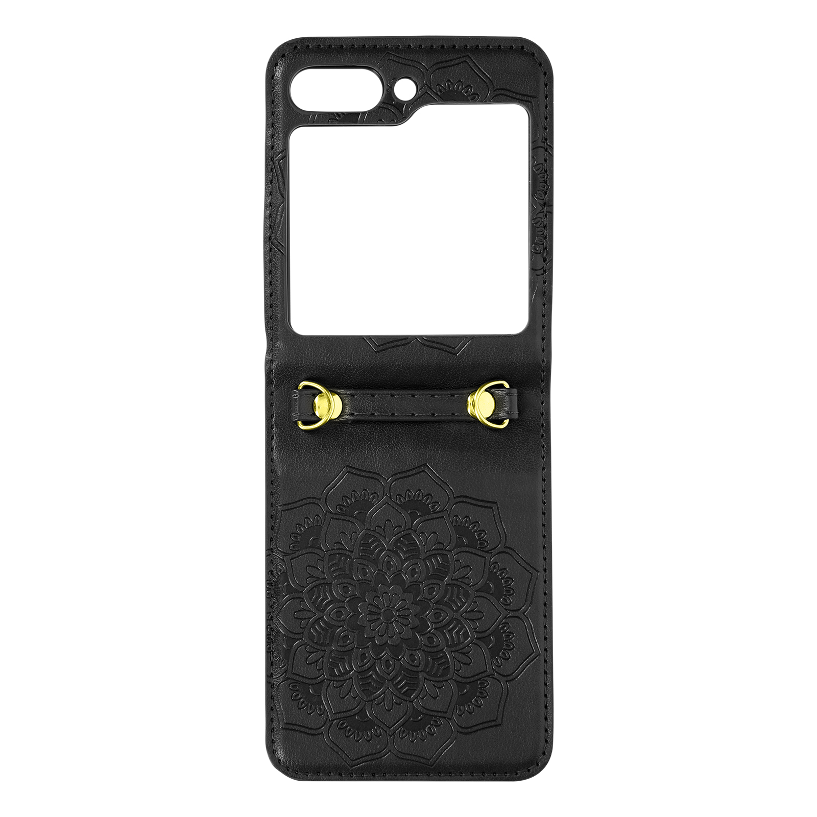 Ovitek za Samsung Galaxy Z Flip 5 s cvetlicnim vzorcem, serija Mandala Blossom - crna