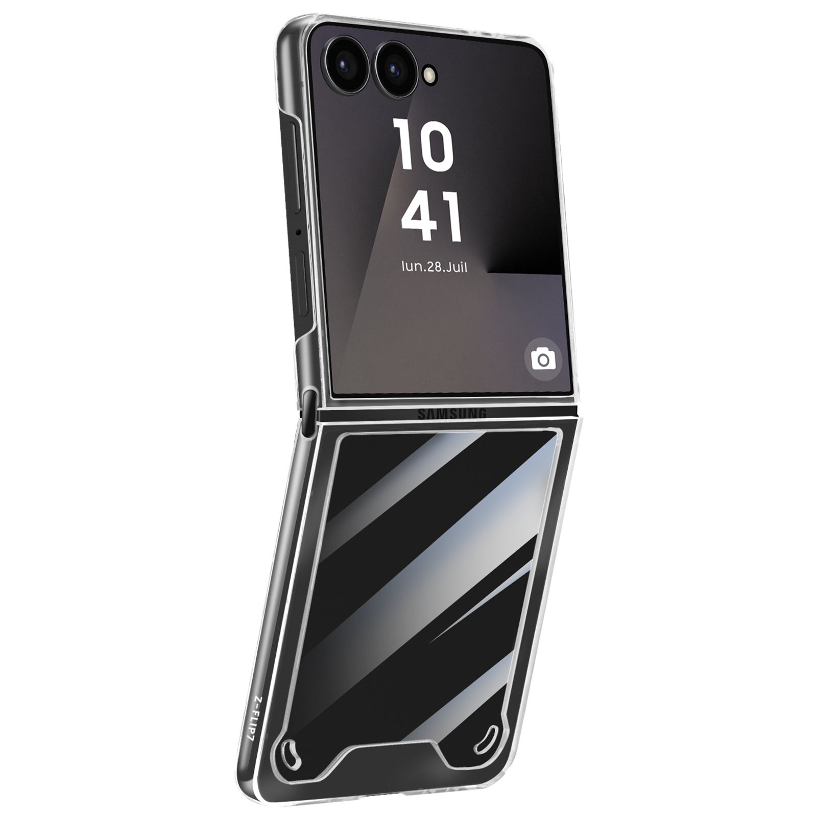 Dvojni material, ki združuje trdo hrbtno stran in mehke obline za popolno zaščito. Vgrajena zaščita tečajev za zaščito mehanizma Galaxy Z Flip 7 pred obrabo in udarci. Oblika za blaženje udarcev učinkovito absorbira udarce, hkrati pa ohranja tankost zložljivega pametnega telefona. Enostavna namestitev in popolno prileganje zagotavljata varno držanje telefona.