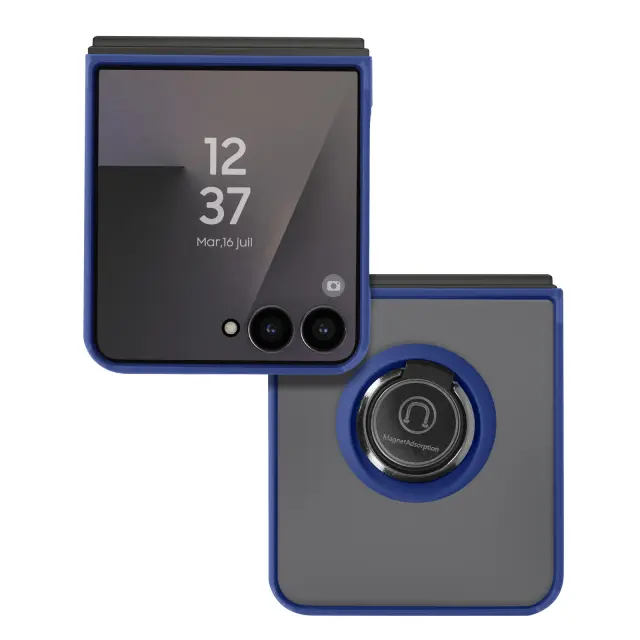 Optimalna zaščita pred udarci s togo modro obrobo in dimljeno prozorno zadnjo stranjo, ki ohranja obliko telefona Galaxy Z Flip 7. Vgrajen magnetni obroč za zanesljiv oprijem in združljivost z avtomobilskimi magneti. Zložljiva zasnova, prilagojena telefonu Galaxy Z Flip 7, za lažje odpiranje in zapiranje. Natančni izrezi za enostaven dostop do gumbov, priključkov in funkcij.