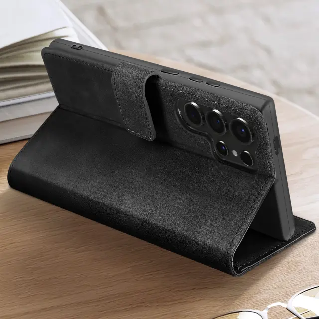 Ovitek za Samsung S24 Ultra Wallet Flip Video Support, Črna