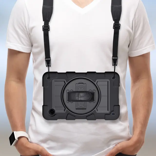 Ovitek za Samsung Tab A9, odporen proti udarcem, in vrtljivim ročajem, Črna