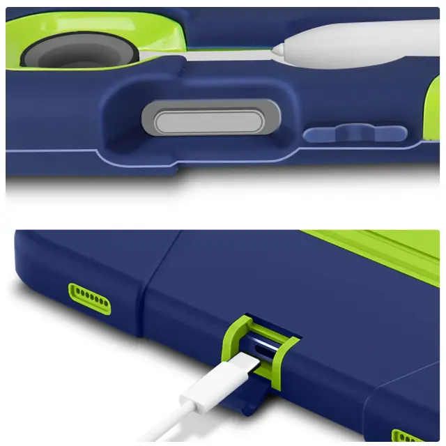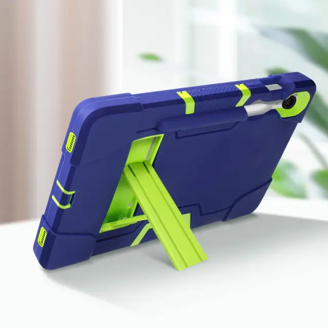 Ovitek za Samsung Tab S9 in Tab S9 FE, odporen proti udarcem, podpora iz dveh materialov - modra in fluorescentno zelena