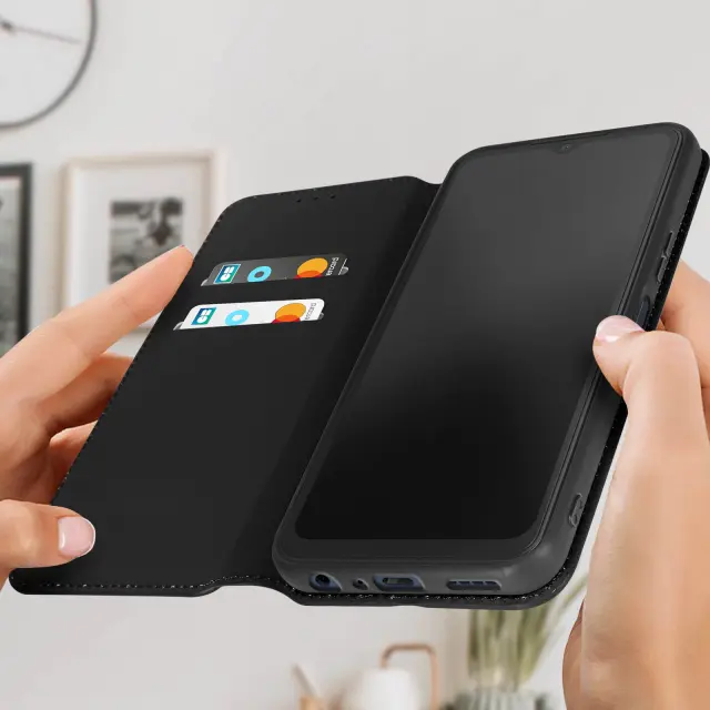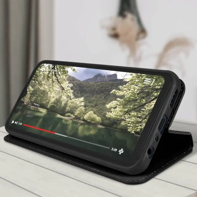 Ovitek Vivo Y22s in Y35 rdec. Ta Ovitek ima reže za kartice v magnetni preklopni vložku in trdno, prožno silikonsko ohišje. Deluje tudi kot vodoravna podpora za ogled vaših videoposnetkov.