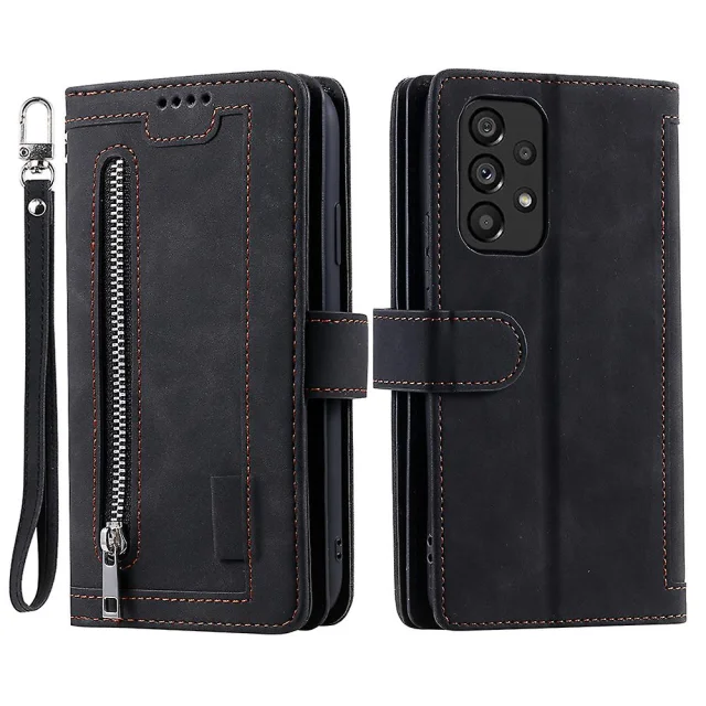 Ovitek za telefon iz PU usnja za Samsung Galaxy A33 5G, žep z zadrgo in 9 režami za kartice, pokrov lupine telefona