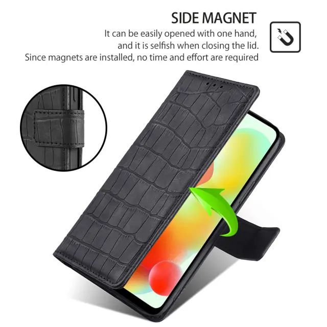 Eleganten vzorec krokodila: Ta ovitek za telefon ima eleganten vzorec krokodila, ki doda vašemu Redmi Note pridih elegance in prefinjenosti. Teksturirana površina ne le izboljša videza, ampak zagotavlja tudi udoben oprijem.