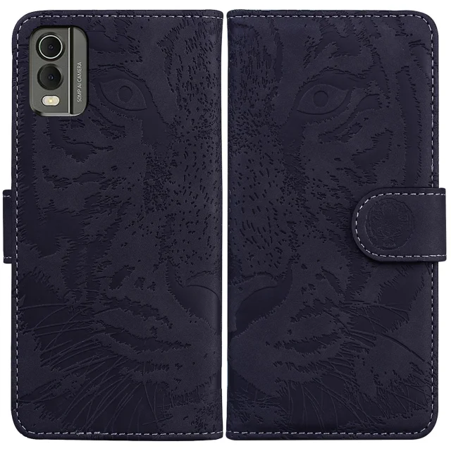 Ovitek za telefon s stojalom proti praskam za Nokia C32, ki podpira stojalo, etui iz PU usnja s tigrovim tiskom