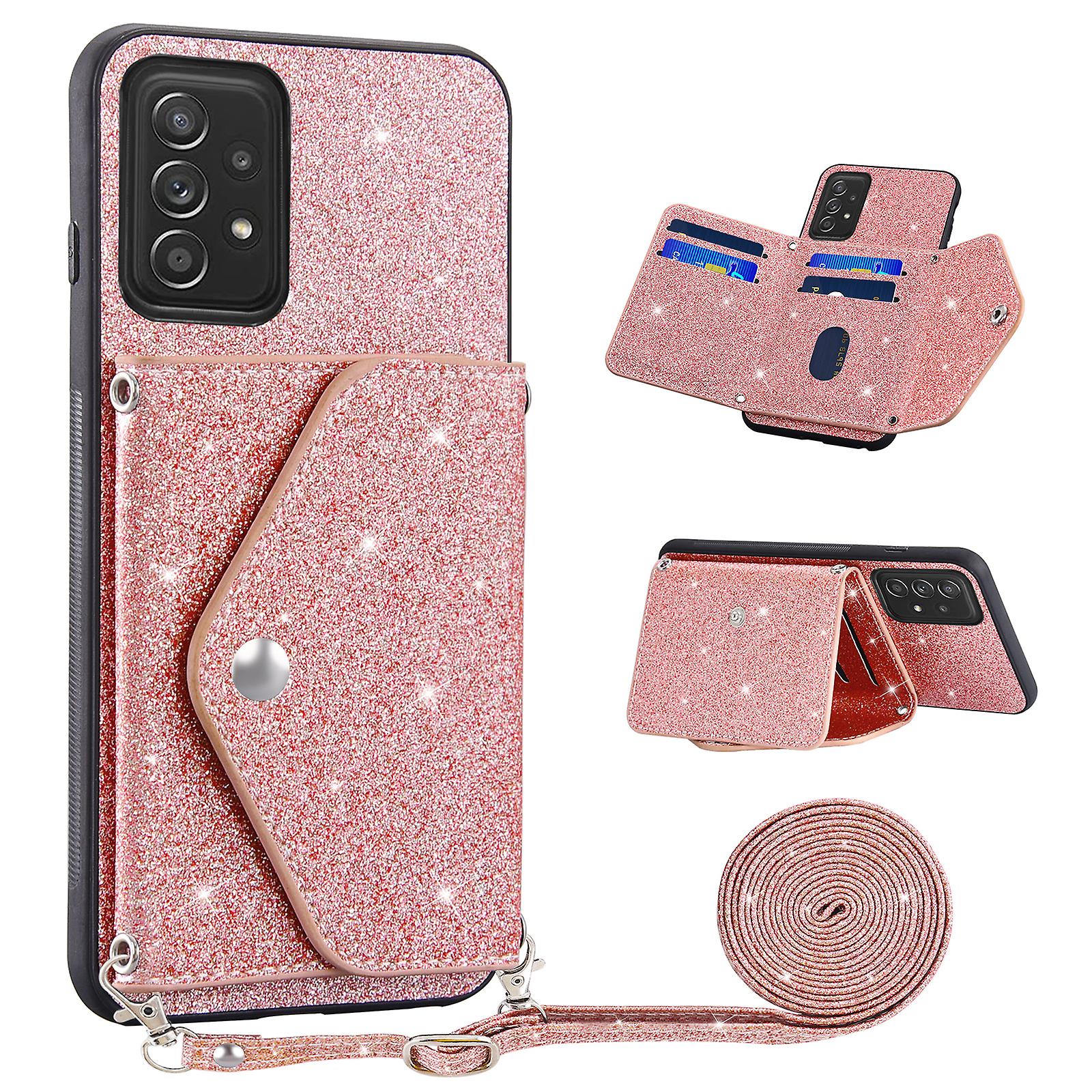 Ovitek za telefon Samsung Galaxy A73 5G, držalo za kartice, bleščeče stojalo, usnjena torbica TPU