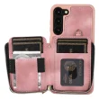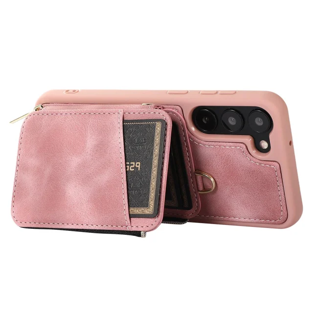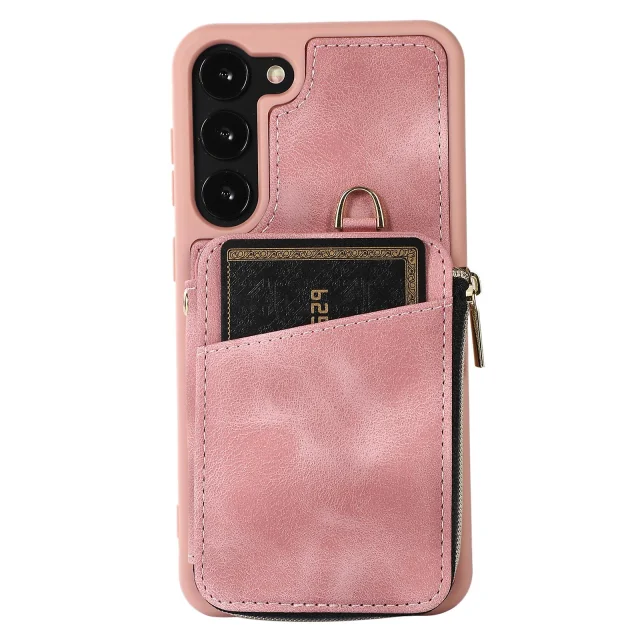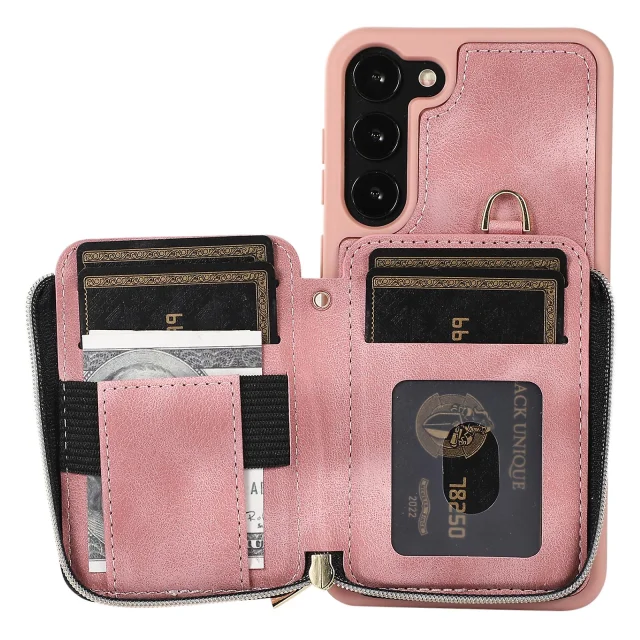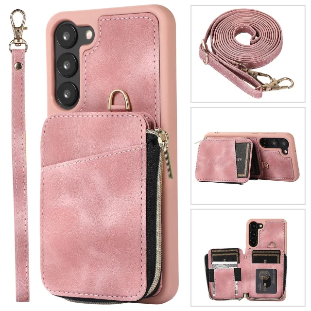 Ovitek za telefon Samsung Galaxy S23, reže za kartice z zadrgo, stojalo, usnjen ovitek TPU s trakovi