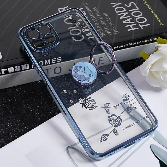 Ovitek za telefon TPU za Samsung Galaxy A42 5G s cvetličnim vzorcem, galvansko obdelan prstan z okrasnim kamnom, pokrov s stojalom