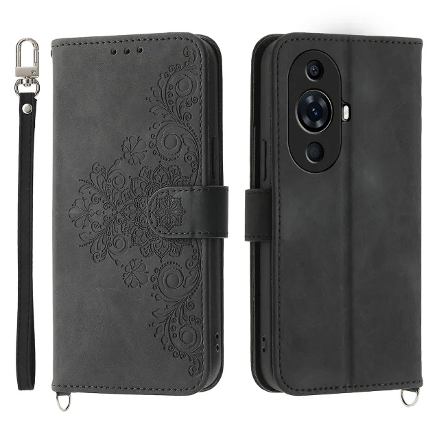 Ovitek za telefon z vtisnjenimi rožicami za Huawei nova 11 Pro Skin-Touch Phone Shell, PU usnjen ovitek za denarnico s paščkom, proti padcem