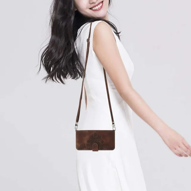 Ovitek za telefon z vtisnjenimi rožicami za Huawei nova 11 Pro Skin-Touch Phone Shell, PU usnjen ovitek za denarnico s paščkom, proti padcem