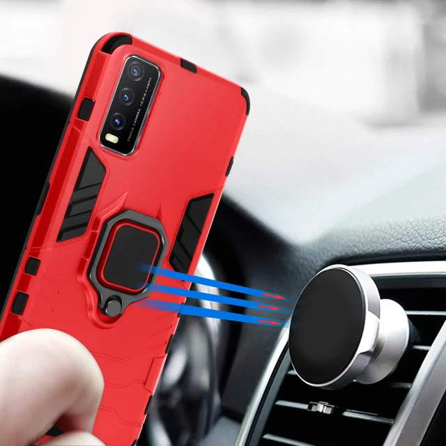Ovitek za Vivo Y20s, odporen proti udarcem, z držalom za prstane, zbirka prstanov - rdec