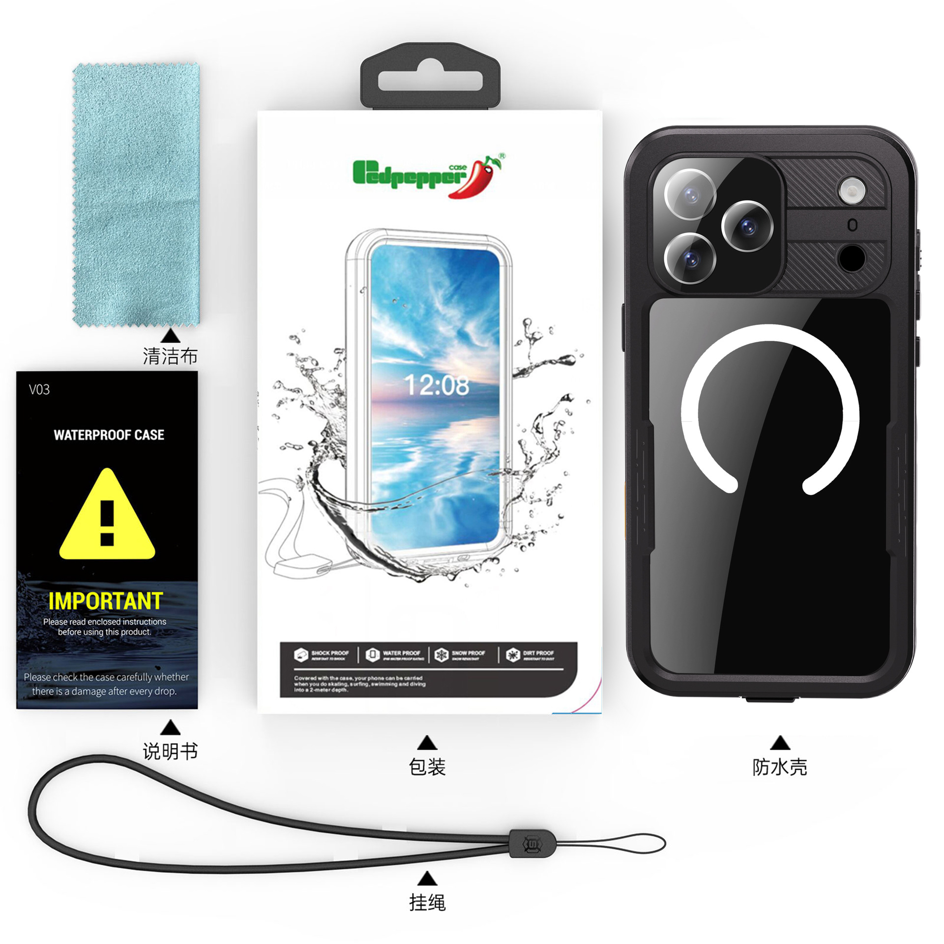 Ovitek za Waterproof iPhone 17 Pro Max kovček,Vodoodporen iPhone 17 Pro Max kovček z [vgrajenim zaslonom/zaščito kamere],Podpora magnetnemu polnje