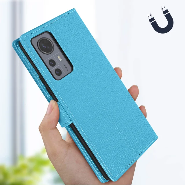 Ovitek za Xiaomi 12 in 12X z magnetnim zavihkom, držalom za kartico in denarnico - moder