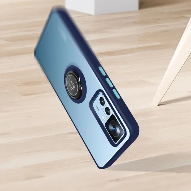 Ovitek za Xiaomi 12T in 12T Pro z držalom za prstan, hrbtna stran z zamrznjeno zašcito proti prstnim odtisom, združljivo z magnetnim stojalom - modra