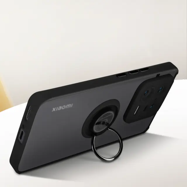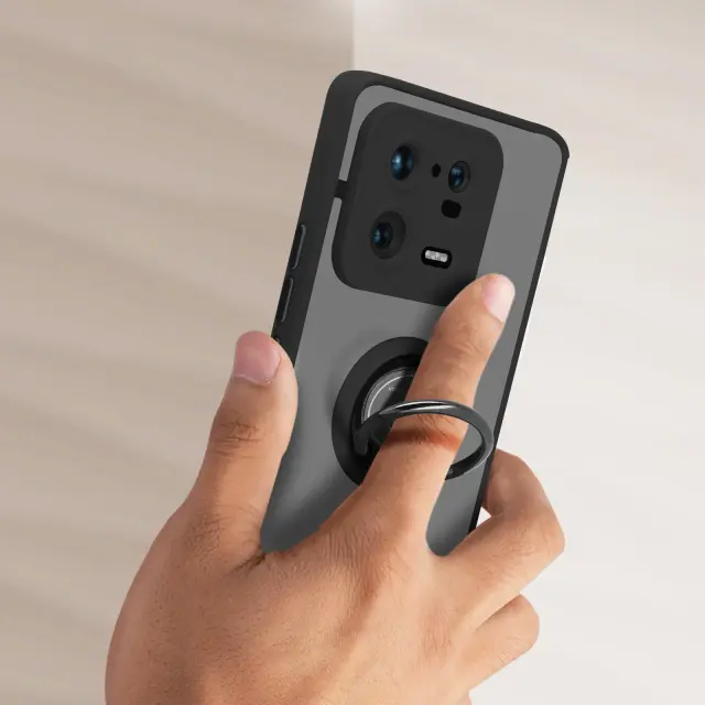 Crn etui Xiaomi 13 Pro iz dveh materialov, serija Ringrip, šciti vaš telefon pred udarci in praskami. Zašcita z zadrževalnim obrocem, ki se lahko uporablja kot video nosilec in združljiv z magnetnim nosilcem (ni vkljucen). Mat zakljucek proti prstnim odtisom.