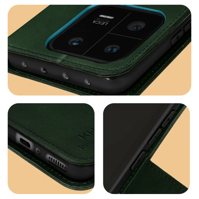 Ovitek za Xiaomi 13 Pro, soft-touch Suede Effect, z denarnico in magnetnim jezickom - zelen