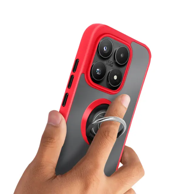 Ovitek za Xiaomi 17 z obročastim stojalom in magnetno pritrditvijo, Rdeča