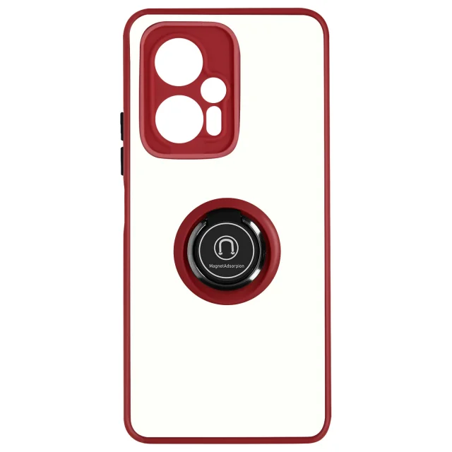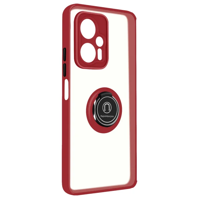 Ovitek za Xiaomi Poco X4 GT z držalom za prstan, hrbtna stran z zašcitnim prstnim odtisom, združljiv z magnetnim stojalom - rdec