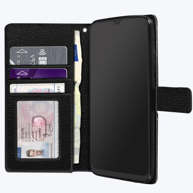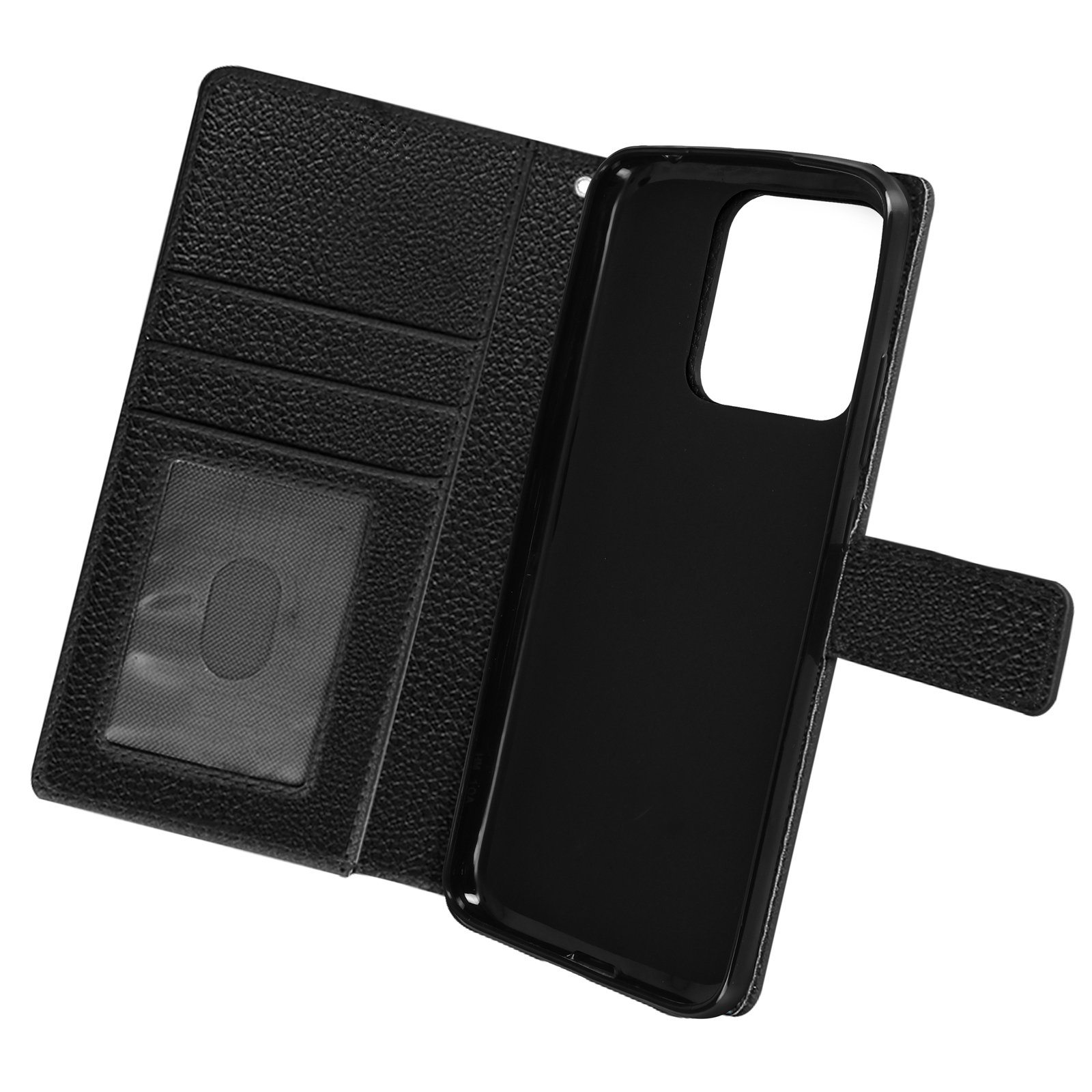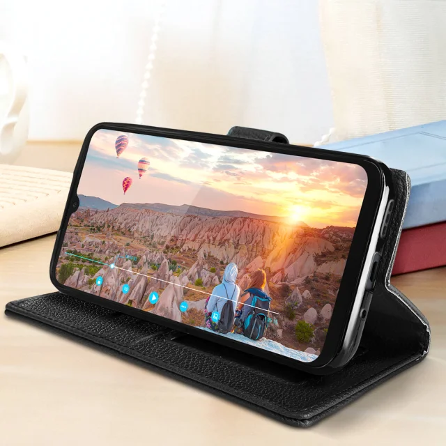Ovitek za Xiaomi Redmi 10A in 9C s preklopom za denarnico in video stojalom, magnetnim jezickom in zapestnim pašckom - crn