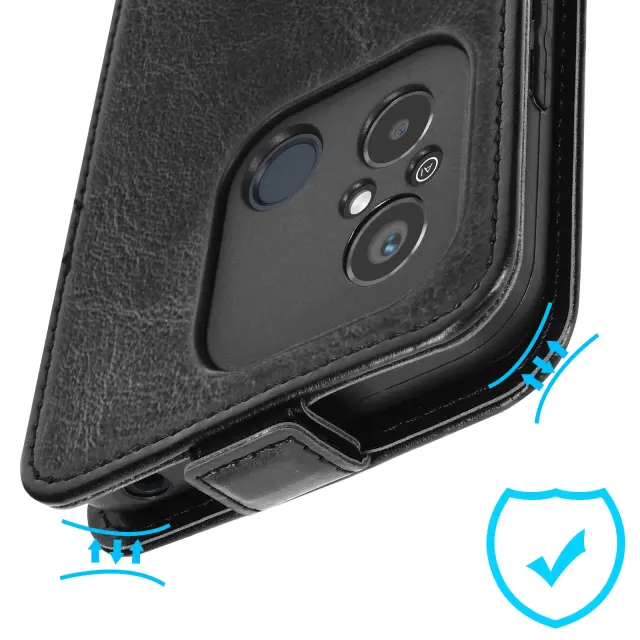 Ovitek za Xiaomi Redmi 12C, magnetno navpicno preklopno držalo za kartice, crna