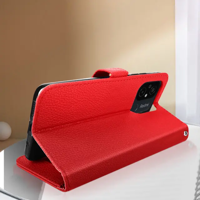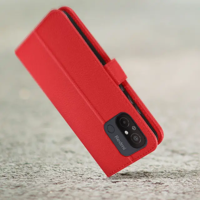Ovitek za Xiaomi Redmi 12C Video Stand Wallet iz umetnega usnja, rdec