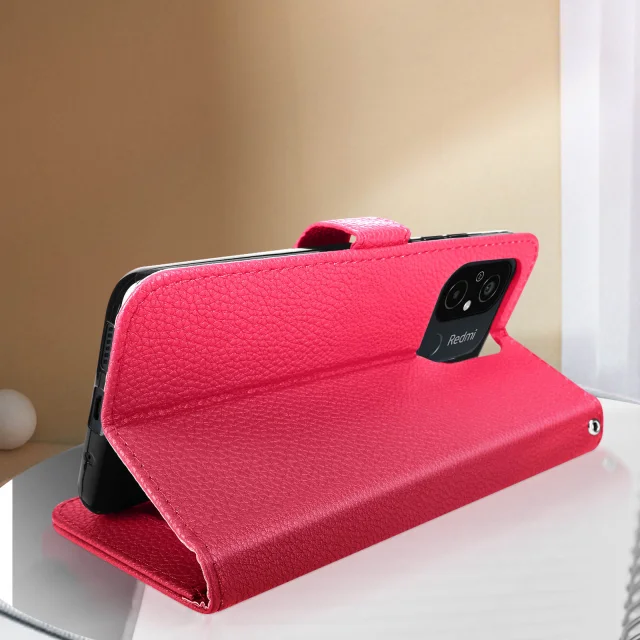 Ovitek za Xiaomi Redmi 12C Video Stand Wallet iz umetnega usnja roza