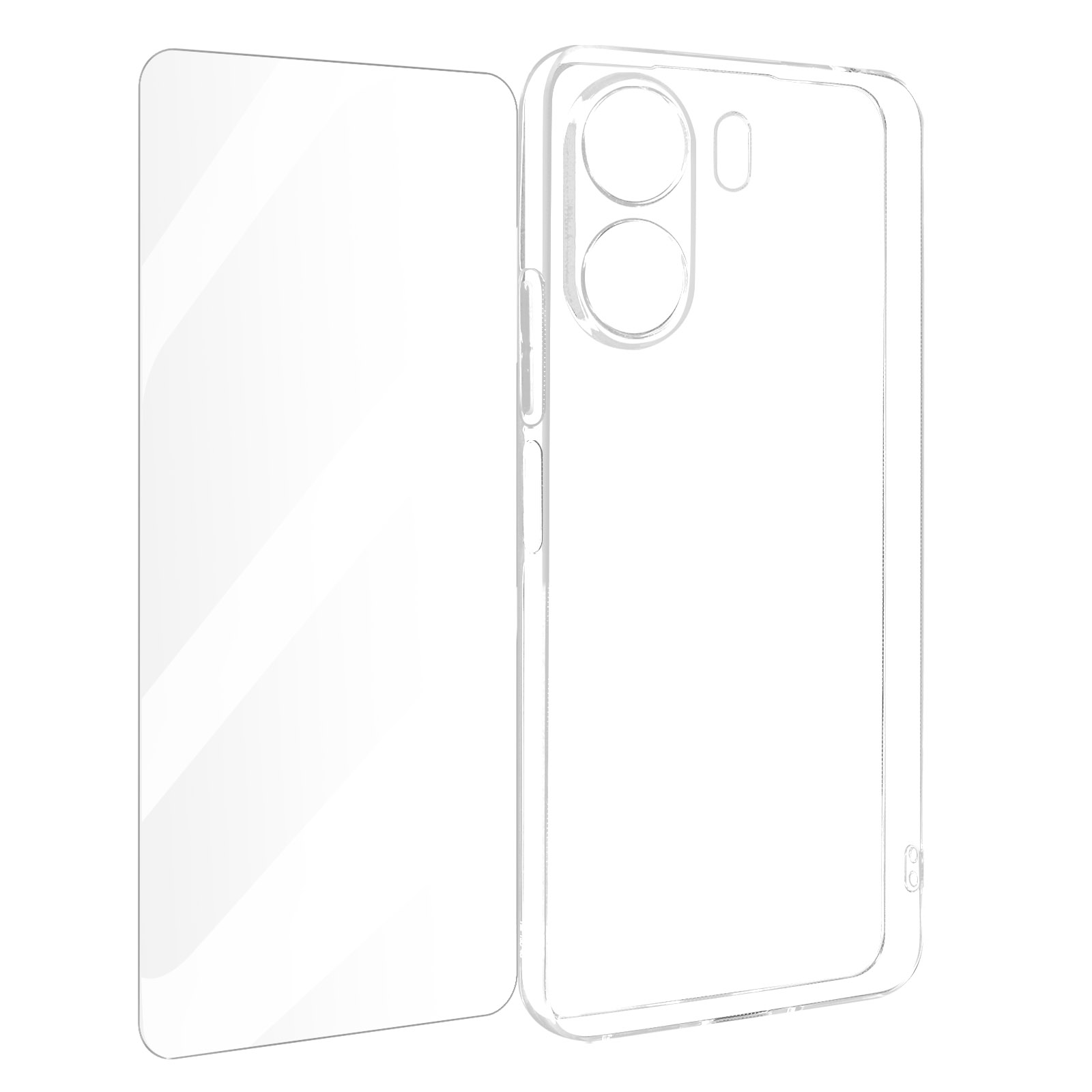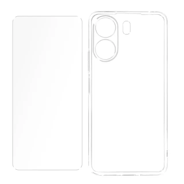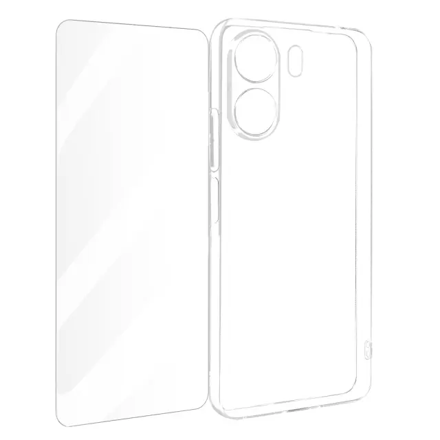 Ovitek za Xiaomi Redmi 13C silikonski gel in kaljeno steklo, Prozorno