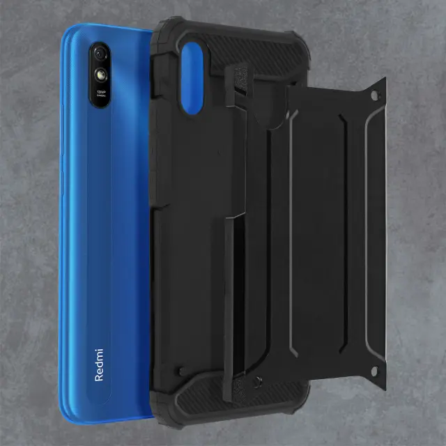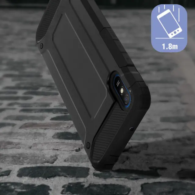 Zaščitni ovitek posebej oblikovan za Xiaomi Redmi 9A / 9AT. Dvomaterial, silikonski notranji premaz in okvir iz polikarbonata. Ta prevleka je odporna na udarce in je odporna na padce z višine največ 1,80 metra. Ojačani koti za optimalno zaščito v vseh okoliščinah.