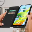 Ovitek Xiaomi Redmi A1 in A2 crn. Ta etui ima reže za kartice v preklopni podlogi in trdno, prožno silikonsko gelno ohišje. Deluje tudi kot vodoravna podpora za ogled vaših videoposnetkov.