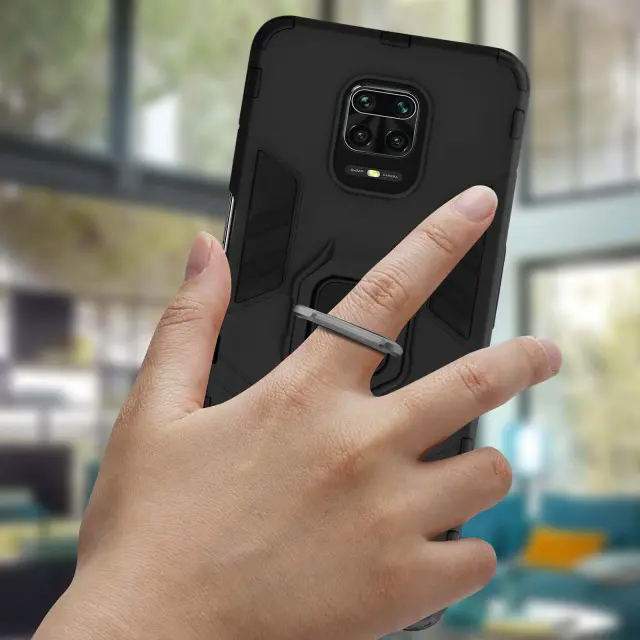 Ovitek za telefon, posebej zasnovan za Redmi Note 9 Pro Max/9 Pro/9S, iz kolekcije Ring. Učinkovito ščiti vaš pametni telefon pred vsakodnevnimi udarci in praskami. Zadnja podporna zanka za dober oprijem pri fotografiranju, pisanju sporočil itd. Obroč lahko uporabite za vodoravni položaj telefona za ogled fotografij in videoposnetkov.