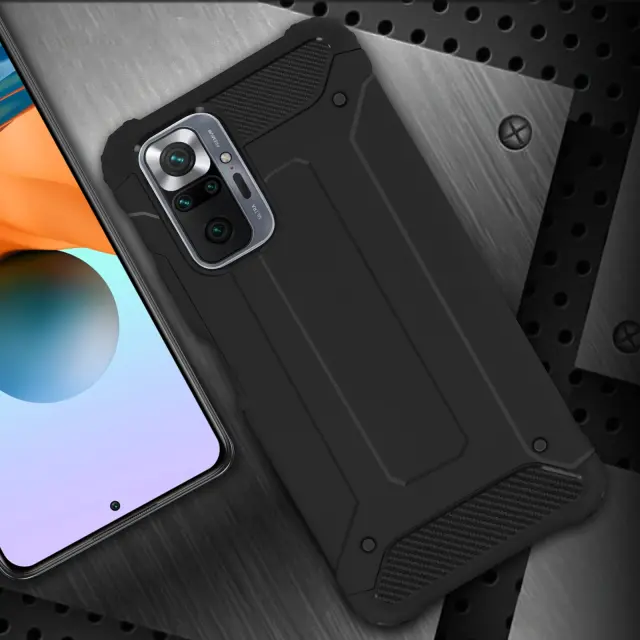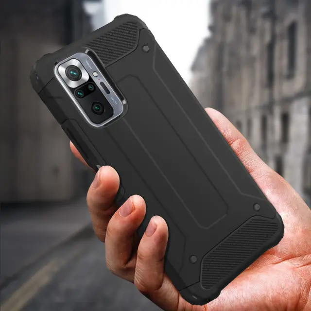 Zaščitna torbica posebej oblikovana za Xiaomi Redmi Note 10 Pro. Dvomaterial, zunanja prevleka iz polikarbonata in notranjost iz silikonskega gela. Ta lupina je odporna na udarce in je odporna na padce z višine največ 1,80 metra. Ojačani koti za optimalno zaščito v vseh okoliščinah.