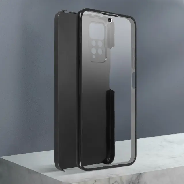 Ovitek za Xiaomi Redmi Note 11 Pro 5G crn. Ta vsestranska 360-stopinjska zašcita ima trdo zadnjo stran iz polikarbonata, odporno na udarce, in nezlomljivo sprednjo stran iz polimera, ki pokriva zaslon in stran telefona.