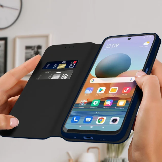 Ovitek za Xiaomi Redmi Note 10 5G / Xiaomi Poco M3 Pro, držalo za kartico in video, magnetni preklop - moder