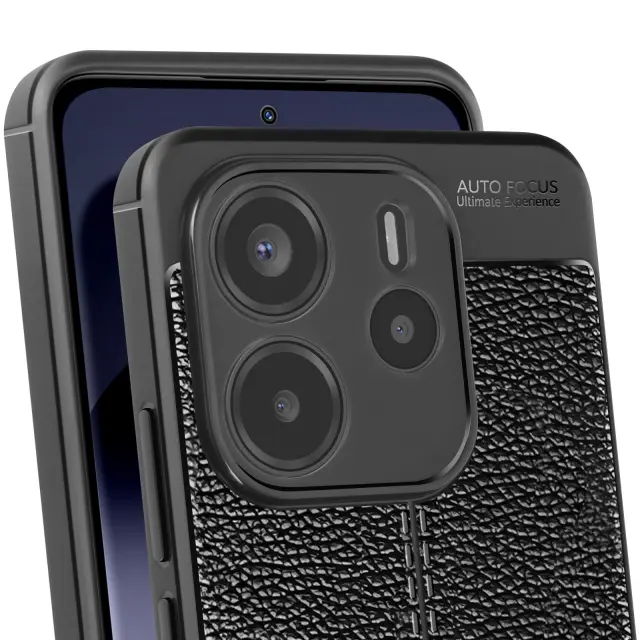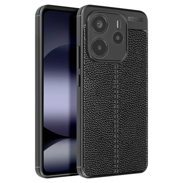 Ovitek za Xiaomi Redmi Note 14 4G Silikon z učinkom zrnatega usnja, Črna