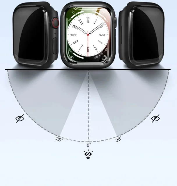 Ovitek za zasebnost z zaščito zaslona iz kaljenega stekla za Apple Watch 9 Black 45 mm