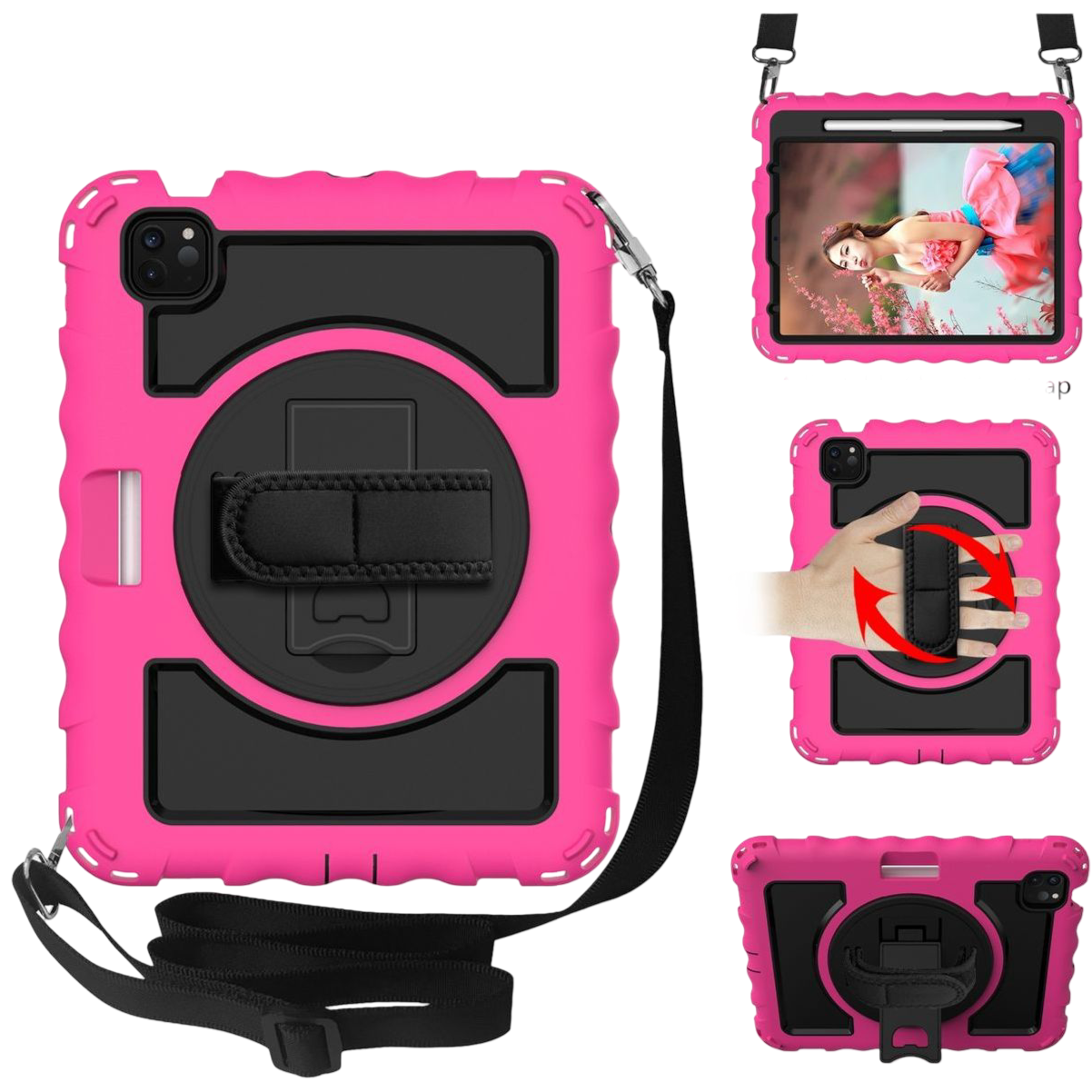Ta trpežni ovitek je zasnovan za zagotavljanje visoke stopnje zaščite vaše naprave iPad Pro 11" med vsakodnevno uporabo. Njegova konstrukcija je sestavljena iz treh plasti, vključno s plastičnim ohišjem in mehkim silikonskim hrbtiščem, ki učinkovito ščiti tablični računalnik pred praskami, udarci in vibracijami. Izdelek je primeren za različne dejavnosti na prostem, kot so pohodništvo in izleti, saj nudi zanesljivo varnost v različnih okoljih. Združuje praktično funkcionalnost z ergonomsko obliko, kar omogoča brezskrbno uporabo naprave kjerkoli in kadarkoli.