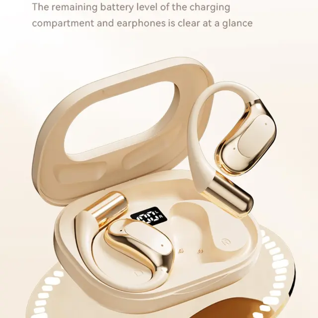 Udobje odprtih ušes: Doživite neprimerljivo udobje s temi Bluetooth slušalkami OWS. Zasnova odprtih ušes zagotavlja prileganje brez pritiska, kar vam omogoča, da uživate v glasbi ali klicih, ne da bi blokirali ušesni kanal. Ta zasnova je popolna za dolgotrajno uporabo in zagotavlja udobno izkušnjo poslušanja več ur. Idealne za uporabnike, ki ne marajo ušesnih čepkov ali morajo biti pozorni na svojo okolico, te slušalke ponujajo edinstveno in udobno alternativo. Varna zasnova ušesnega kavlja jih ohranja na mestu med vadbo ali vsakodnevnimi aktivnostmi, kar zagotavlja, da ostanejo na mestu ne glede na to, kaj počnete. Uživajte v kristalno čistem zvoku in ostanite povezani, ne da bi žrtvovali udobje s temi inovativnimi slušalkami z odprtimi ušesi.