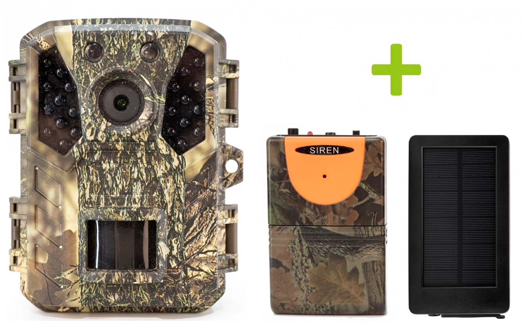 Cenovno ugoden paket sestavljajo lovska kamera OXE Gepard II, detektor lova in solarni panel OXE Solar Charger 6V. Detektor lova dopolnjuje past kamere s funkcijo alarma. Delovanje lovske kamere preko solarnega panela je ekološko in ekonomsko ugodno (ni vam treba nenehno kupovati novih baterij – s tem prihranite denarnico in naravo). Vsak lovec bo cenil ta komplet!