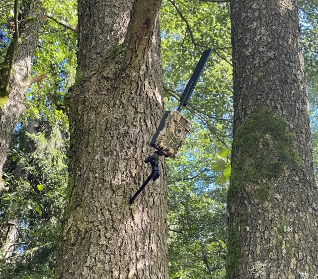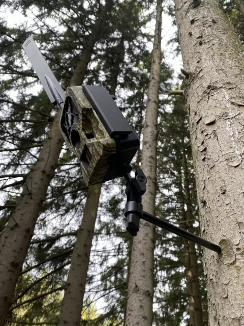 Pozicijska naprava s samoreznim vijakom omogoča enostavno namestitev pasti kamere neposredno v deblo drevesa. Zahvaljujoč ostremu vijaku lahko držalo enostavno privijete v drevo brez težav in brez uporabe orodja. Vrtljivo pozicionirno glavo, ki jo zrahljamo z vijačnim nastavkom le ročno, lahko v nekaj sekundah nastavimo tako vertikalno kot horizontalno in tako udobno usmerimo kamero na želeno mesto. Držalo je zelo robustno in uporabniku prijazno. Celotna namestitev je narejena v eni minuti. Dolžina držala je 20 cm, premer 1 cm.