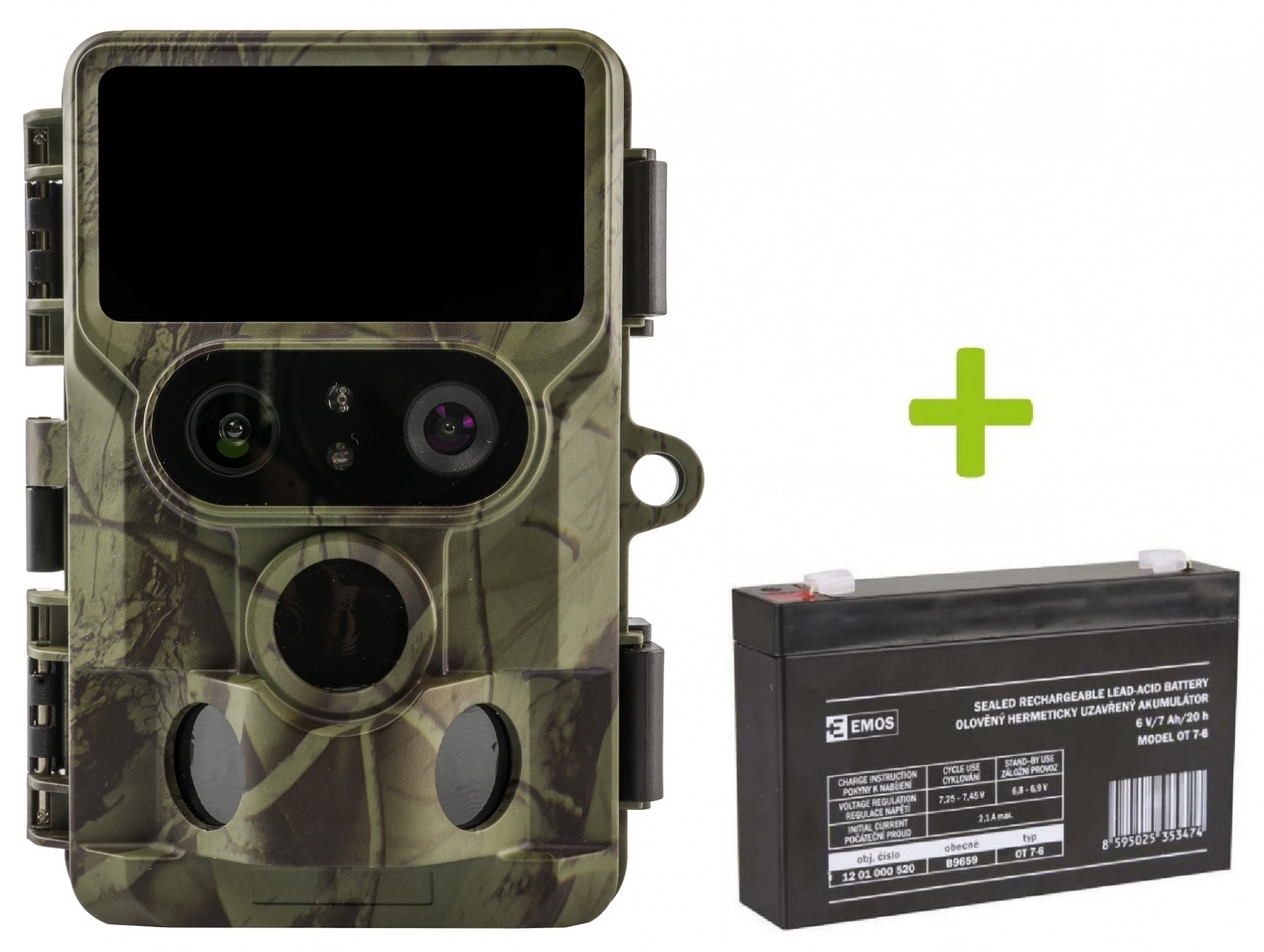 Stroškovno učinkovit paket sestavljajo lovska kamera OXE Tarantula WiFi 4K, zunanja svinčeno-kislinska baterija 6V/7Ah in napajalni kabel. Za delovanje lovske kamere skrbi zunanja baterija, ki je z napajalnim kablom povezana z lovsko kamero. Z nakupom paketa boste tako prihranili v primerjavi z nakupom lovske kamere in zunanje baterije posebej. In se splača!