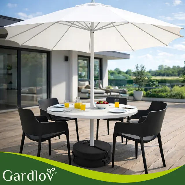Naj vas veter nikoli več ne preseneti! Ta okrogla utežna vreča s premerom 48 cm je zasnovana za vse vrste vrtnih senčnikov, od klasičnih do tistih s križnim podnožjem. Izdelana je iz vrhunske Oxford 600D tkanine, ki je znana po svoji izjemni trpežnosti, vodoodpornosti in odpornosti na UV žarke. Vrečo preprosto napolnite s peskom in jo namestite okoli droga senčnika. Rezultat? Elegantna, mehka in varna utež, ki ne poškoduje vaših tal in ne povzroča udarcev ob prste na nogah.