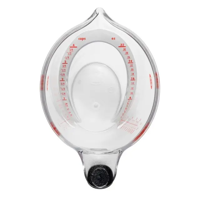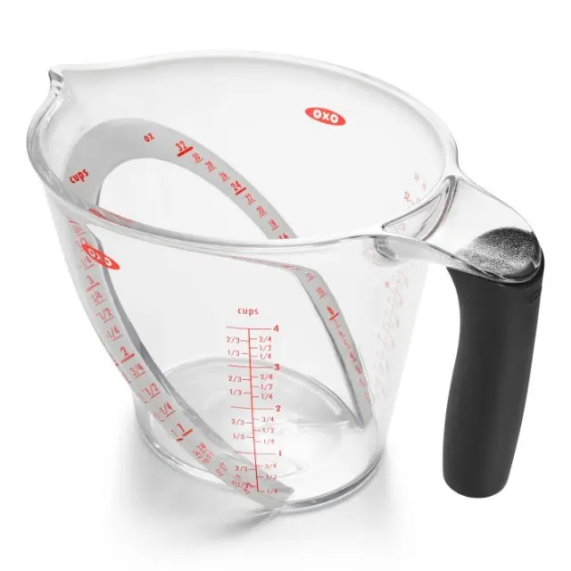 Discover the OXO Good Grips 1L Slanted Measuring Cup, an essential kitchen tool. This expertly designed mixing cup features a comfortable handle and a unique slanted design for accurate measurements of liquids and dry ingredients. Its transparent body with bold red markings ensures easy visibility, making cooking and baking effortless. Made from BPA-free materials, this measuring cup is safe for food contact and dishwasher safe for easy cleaning. Perfect for measuring milk, flour, and more, enhance your culinary experience with this practical companion.