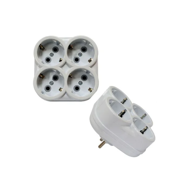 Ozemljen četvorni šuko razdelilec 4v1 bel